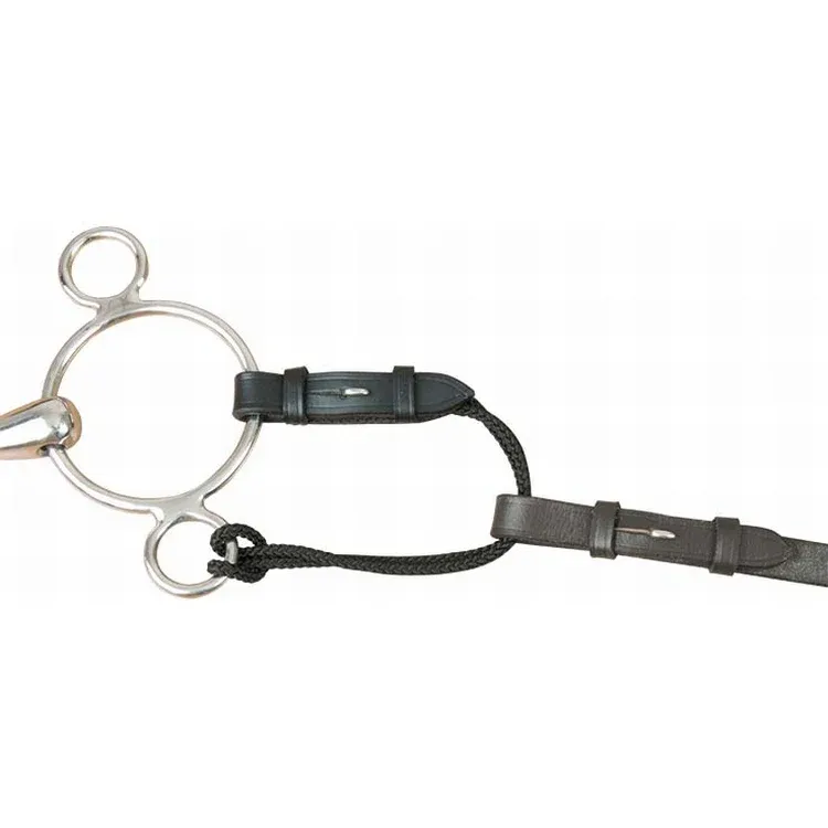 S’adapte aux mors dotés de plusieurs anneaux, tels que les mors Pelham ou réglables. Un côté en cuir de buffle avec fixation par crochets, l’autre côté en corde pour plus de souplesse. Crochet de boucle en inox.