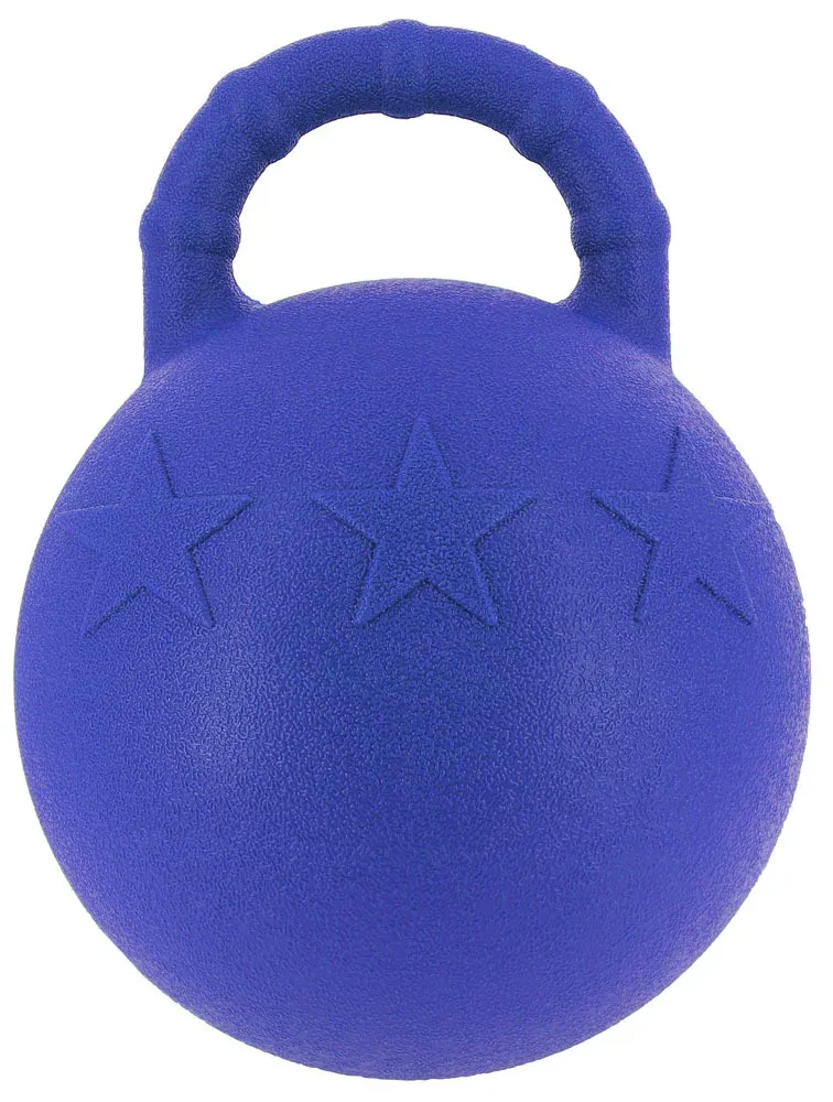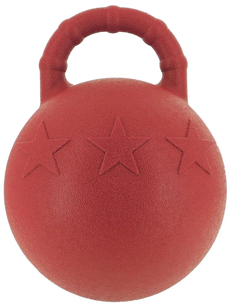 Pour distraire votre cheval au box, ballon à grosse poignée pouvant être pris en bouche et lancé ! En plastique EVA granuleux favorisant la prise, avec une agréable odeur de pomme.