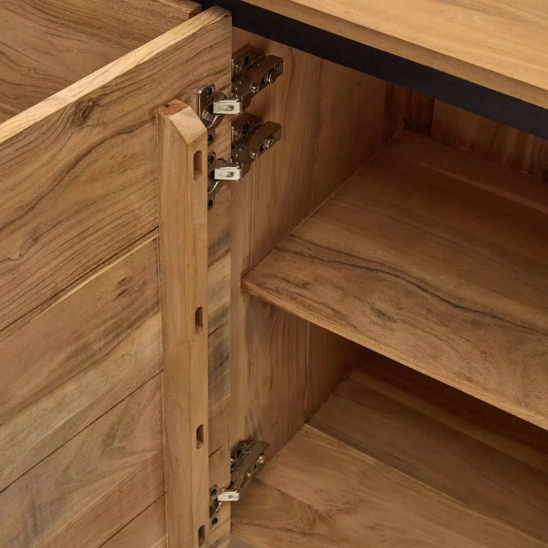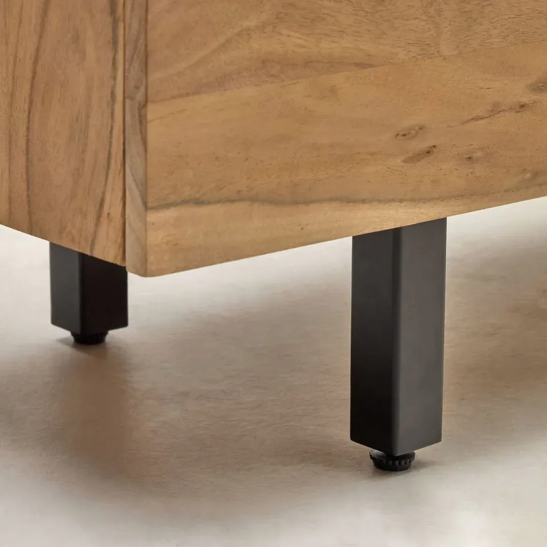 La collection Uxue en bois d’acacia est une création de l’équipe Kave Home. Elle se distingue par la ligne noire qui traverse chaque meuble. Chaque pièce est exclusive grâce aux veinures et aux tonalités uniques caractéristiques du bois.