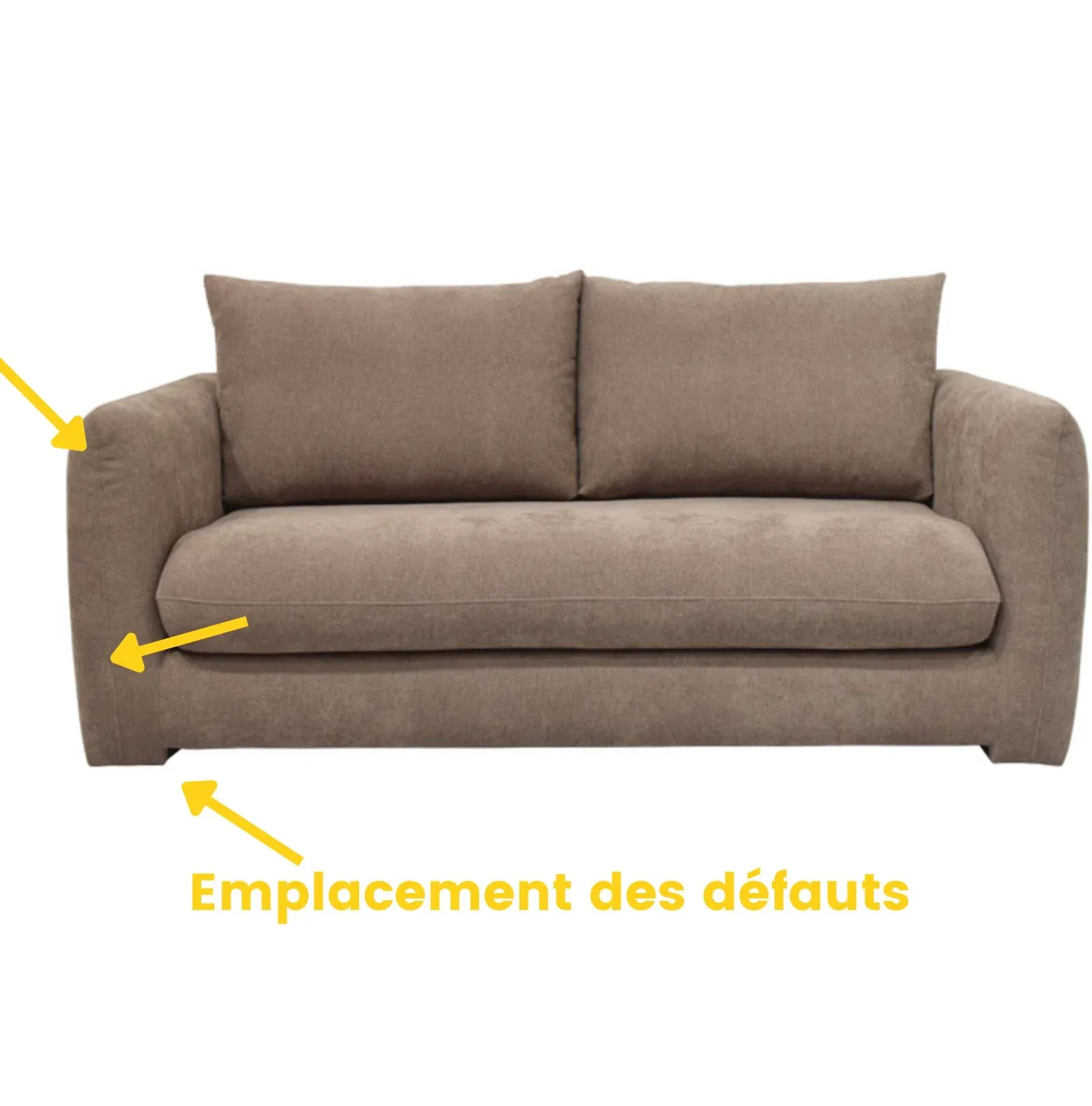 Ce canapé se dote d’un coussin d’assise XXL ainsi que de 2 grands coussins au niveau du dossier. Des accoudoirs arrondis viennent compléter ce cocon de douceur. On n’a qu’une envie : se lover des heures durant dans ce canapé au revêtement en tissu taupe