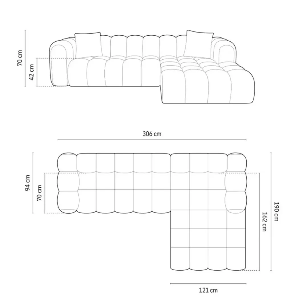 - Dimensions : L306 x H190 x P70 cm