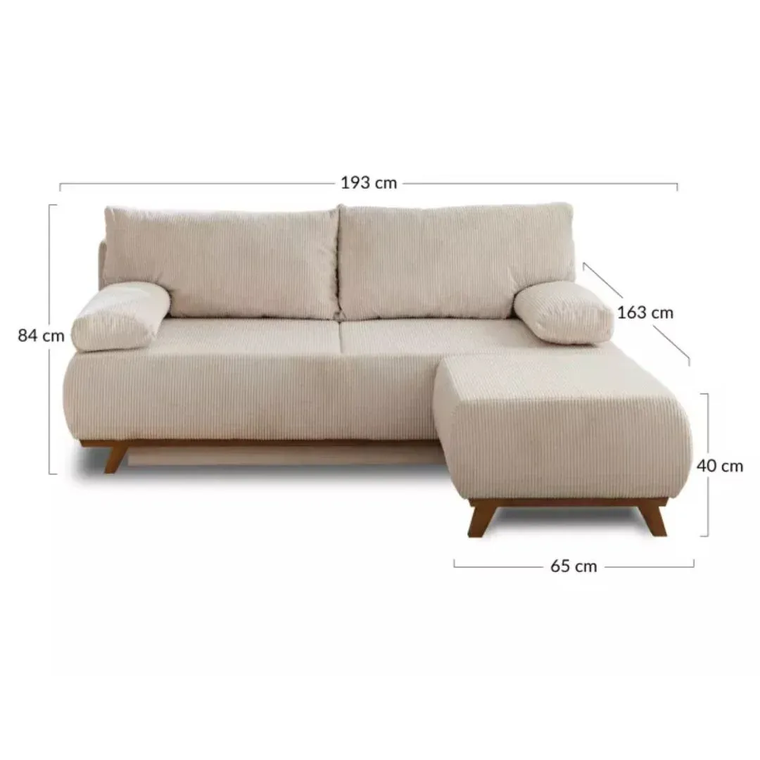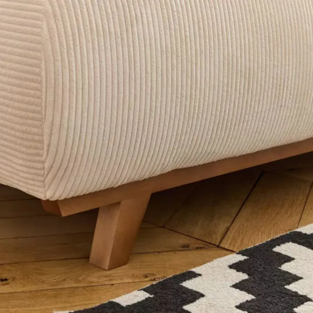 - Détail des matières : Assise et dossier : Mouse polyuréthane 30kg/m3 – Ressorts Bonell – Structure en bois et panneaux de particules – Revêtement en velours côtelé 100% polyester – Pieds en bois