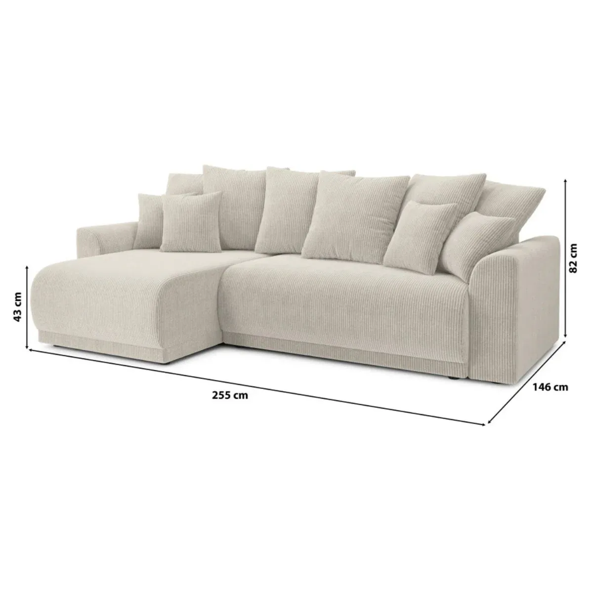 - Dimension: Hauteur 100cm, Largeur 255cm, Profondeur 146cm