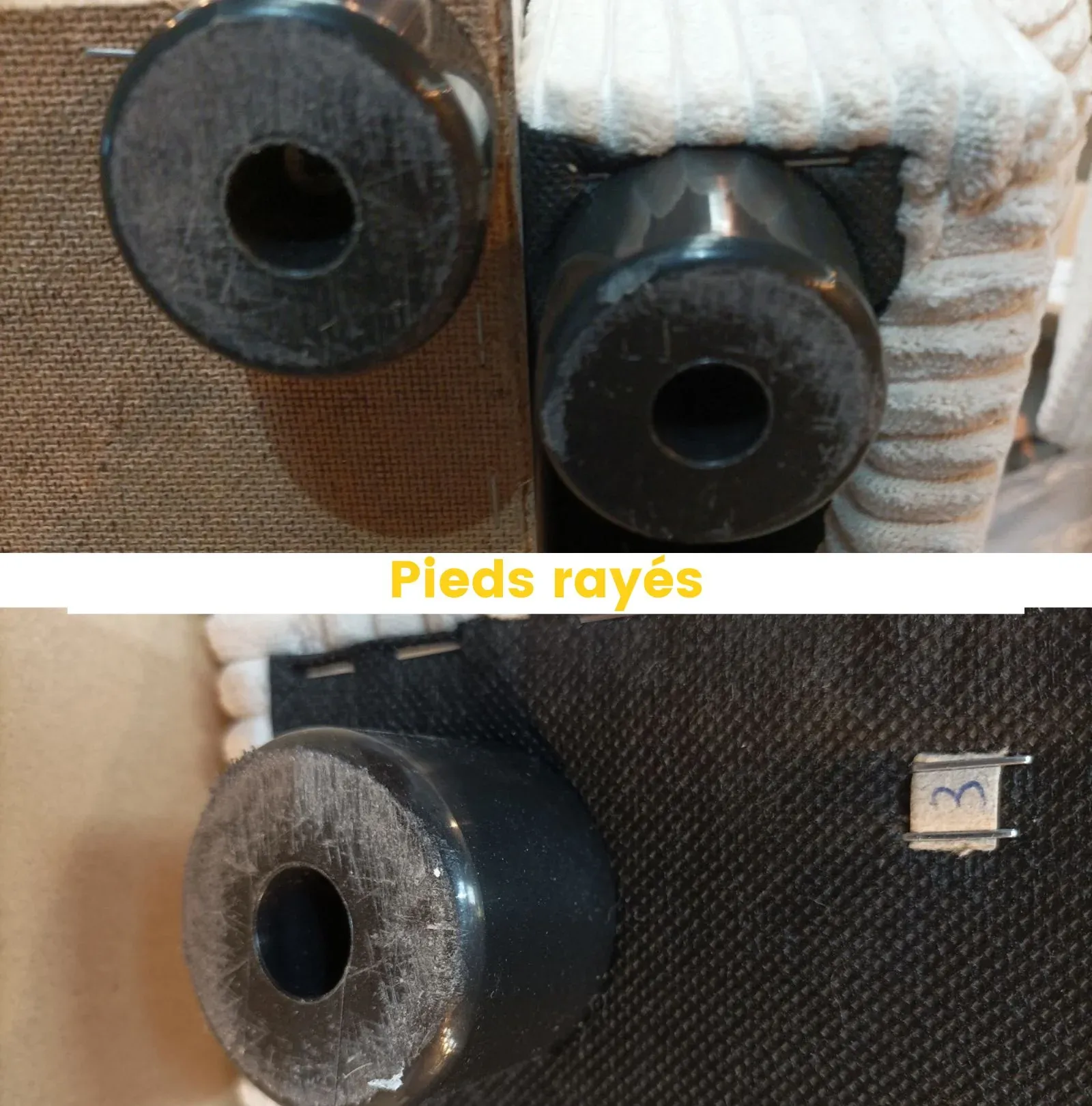 - Défauts: marques peu visibles sur les pieds