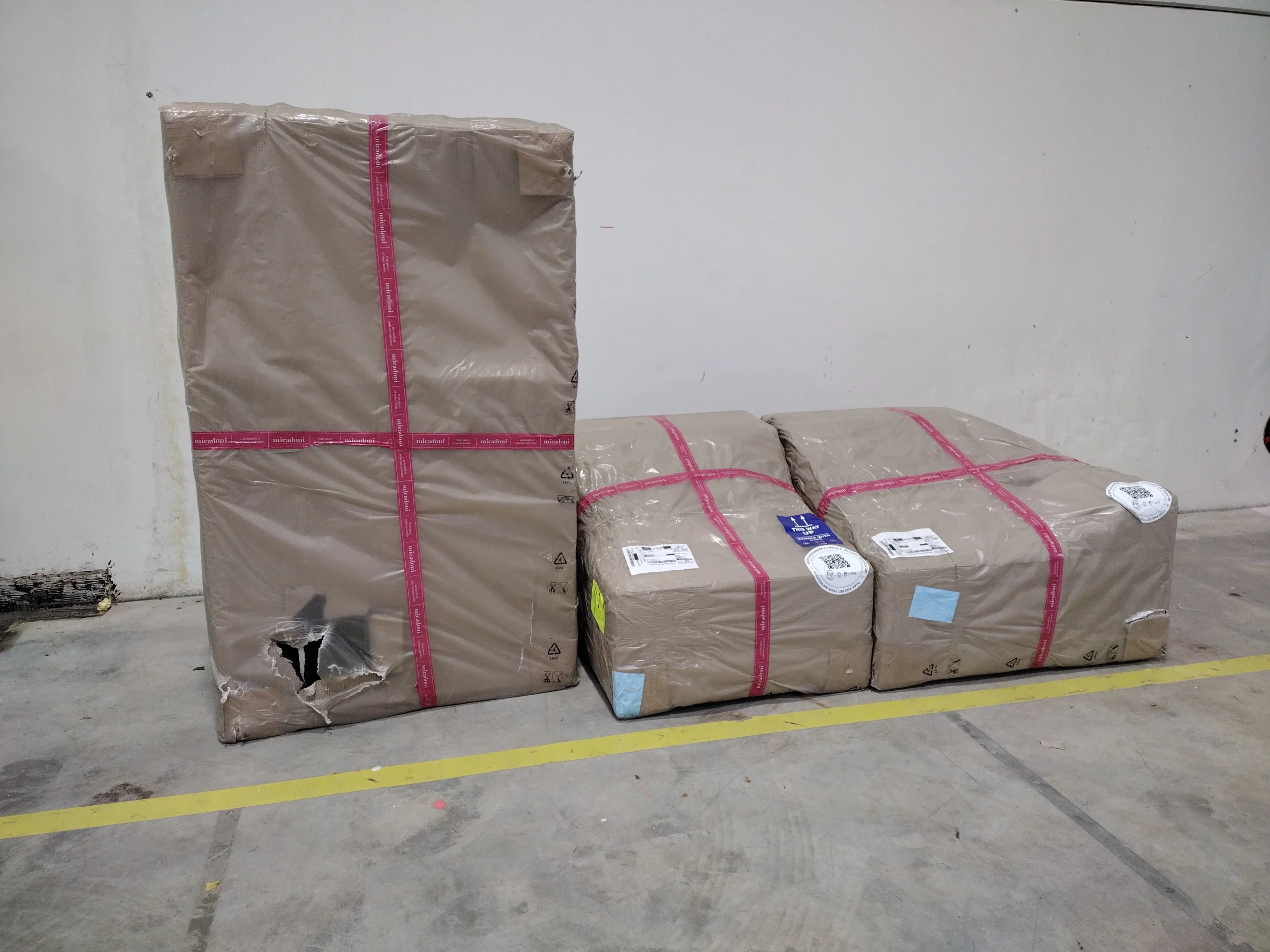 - Défaut: Toile de fond sous la méridienne déchirée (invisible une fois le canapé en place)