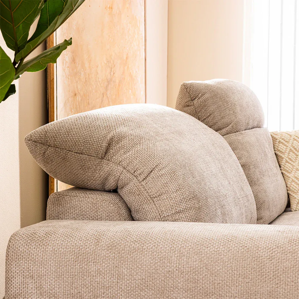 Canapé Drawer 3 places avec têtières réglables en tissu chenille : Couleur – Ecru