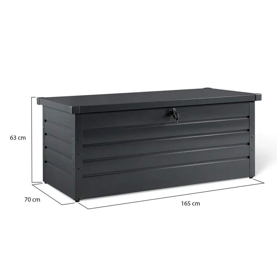 Ce coffre de jardin est idéal pour stocker des coussins ou outils de jardin. Conçu en acier galvanisé, il garantit une grande durabilité et une excellente résistance aux intempéries. Ses 2 vérins à gaz permettent une ouverture / fermeture facile du couvercle.