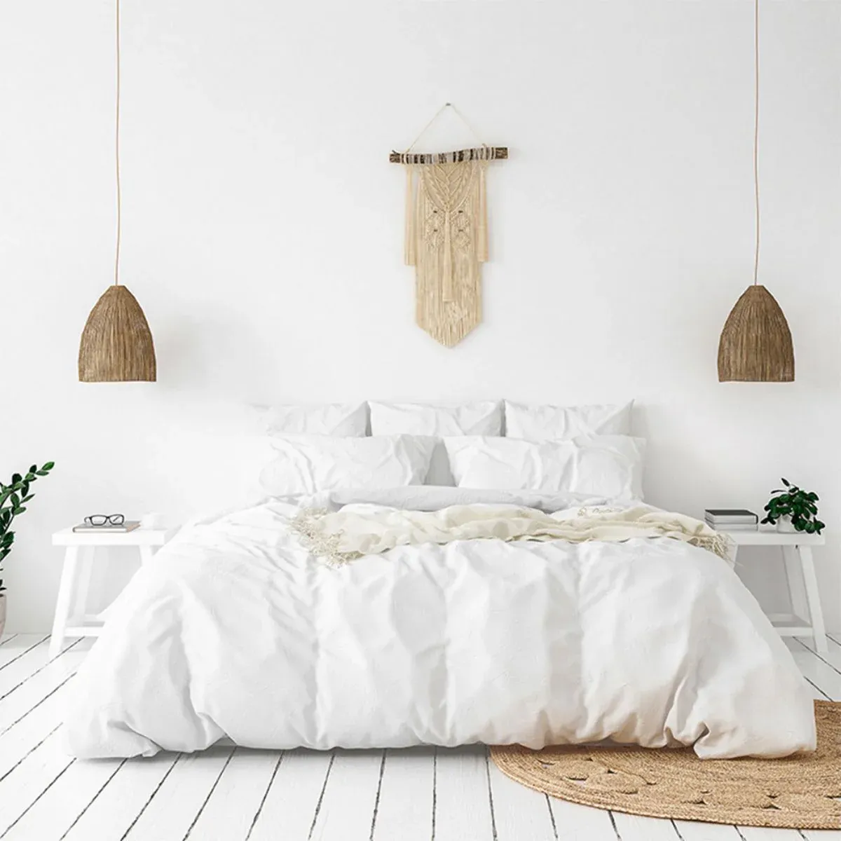- Enveloppe: Percale blanche 100% coton de 130 gr/m²