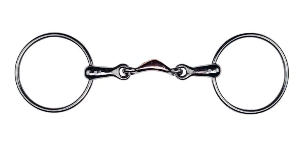 En inox avec double brisure cuivre en 1/4 de lune. Doux et décontractant, il convient bien aux chevaux ayant un palais étroit ou une langue un peu forte.