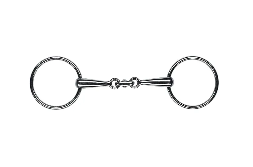 De part sa conception, la double-brisure agrémentée d’une ellipse pleine, s’adapte parfaitement à la conformation de la bouche du cheval. L’ellipse respecte la forme du palais et évite les blessures et les pincements dûs à une brisure simple. Ainsi, le confort du cheval est amélioré et votre action de main plus précise car sans gêne.