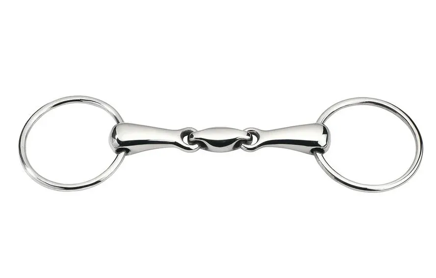 De part sa conception, la double-brisure agrémentée d’une ellipse pleine, s’adapte parfaitement à la conformation de la bouche du cheval. L’ellipse respecte la forme du palais et évite les blessures et les pincements dûs à une brisure simple. Ainsi, le confort du cheval est amélioré et votre action de main plus précise car sans gêne.