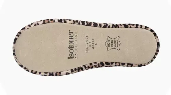 Ces chaussons ballerines en microvelours sont modernes et confortables : elles se distinguent par leur grand noeud et leur motif panthère stylisé, création exclusive des stylistes Isotoner. La mousse utilisée vous assure une semelle intérieure moelleuse et parfaitement adaptée à votre pied. La semelle extérieure a bénéficié d’un tannage végétal, plus respectueux de l’environnement et de votre santé, et garantit un effet seconde peau agréable et pratique. Lavables en machine à 30°C.