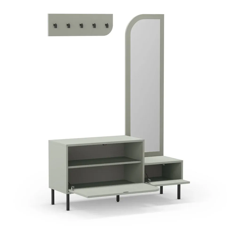 - Meuble d’entrée 2 portes avec miroir et portant en bois et métal H172cm