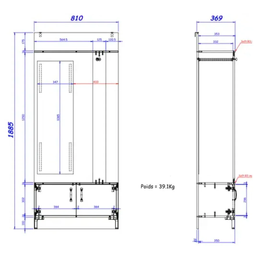 - Dimensions: Hauteur 190cm, Largeur 81cm, profondeur 37cm