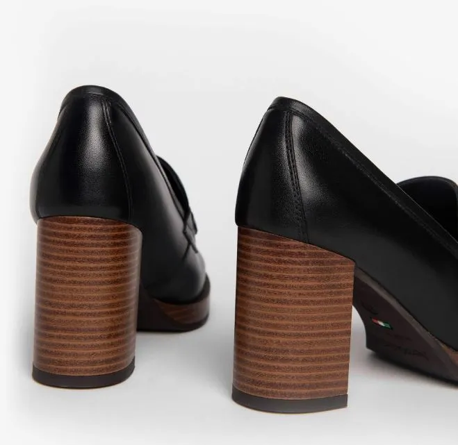 Mocassins noirs à talons.