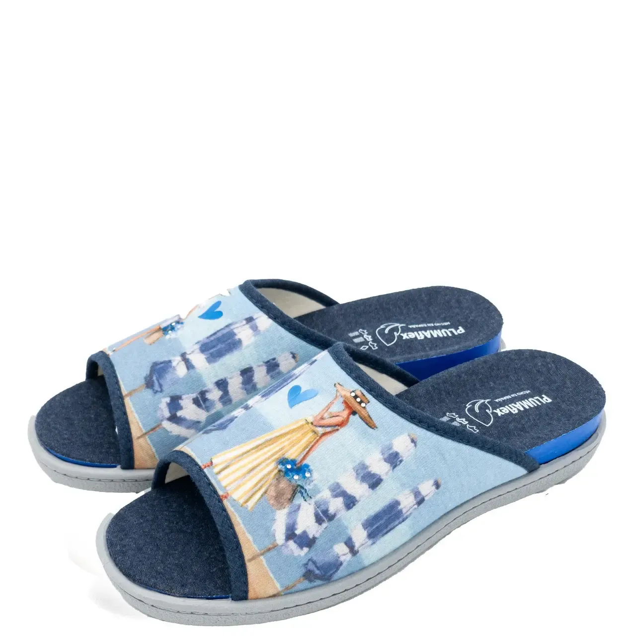 Les mules bout ouvert motif plage Plumaflex sont des chaussons confortables et larges pour femme.
