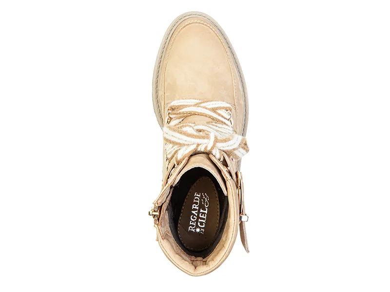 Bottines beiges à lacets.