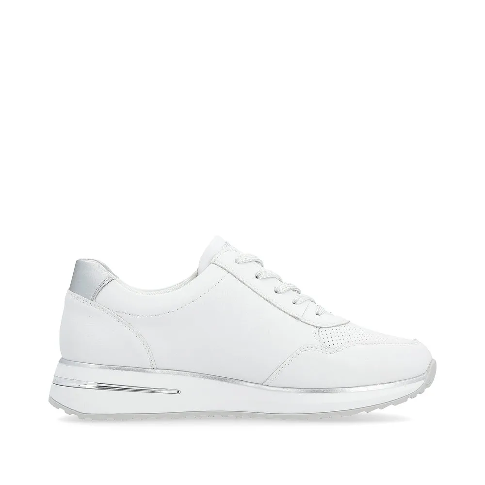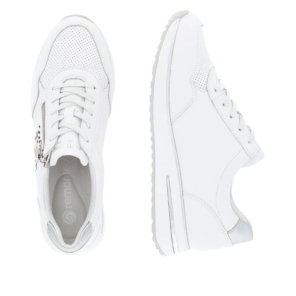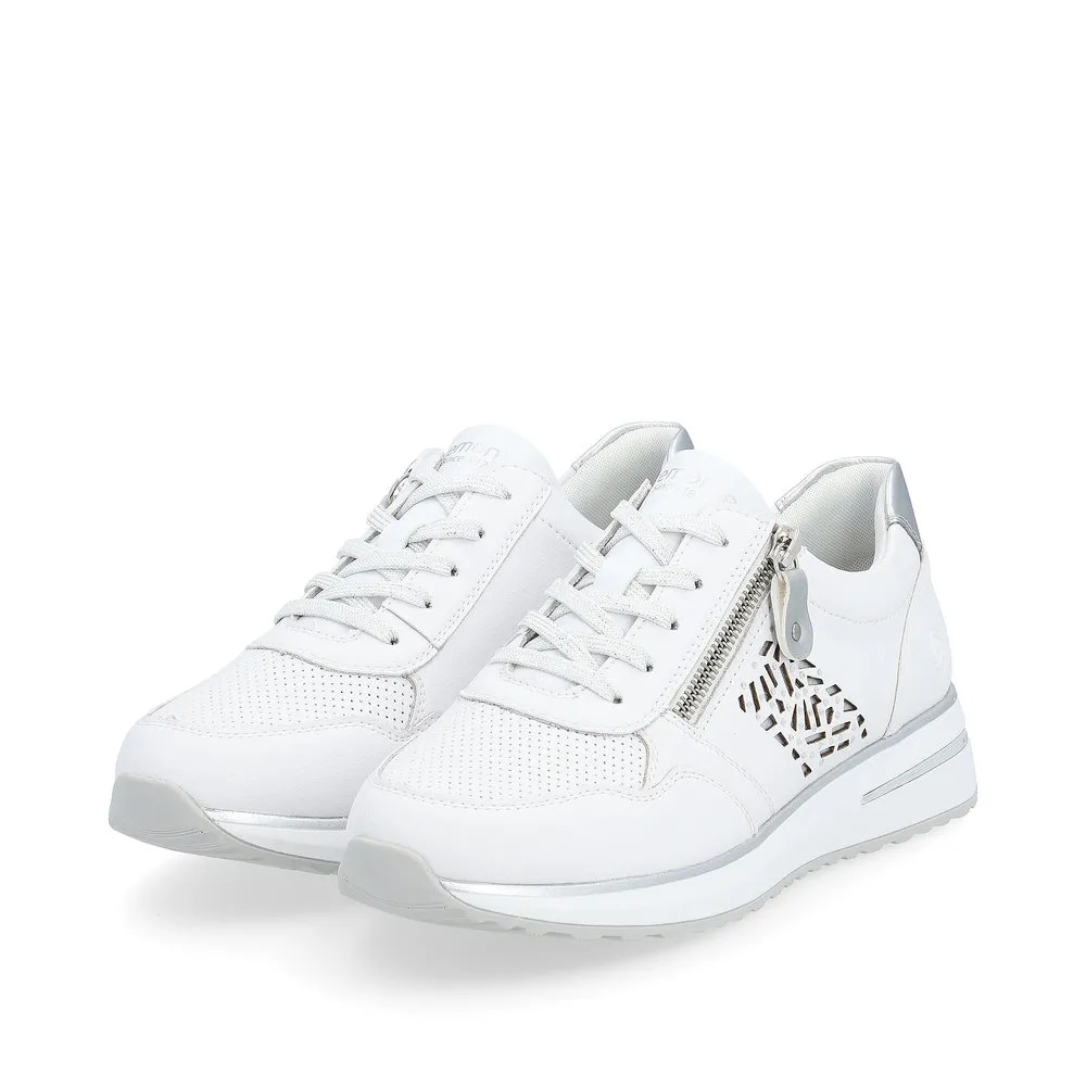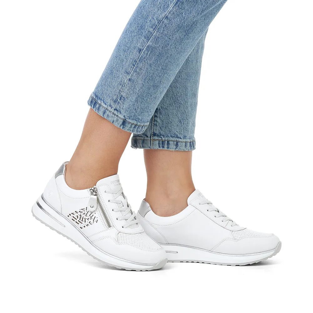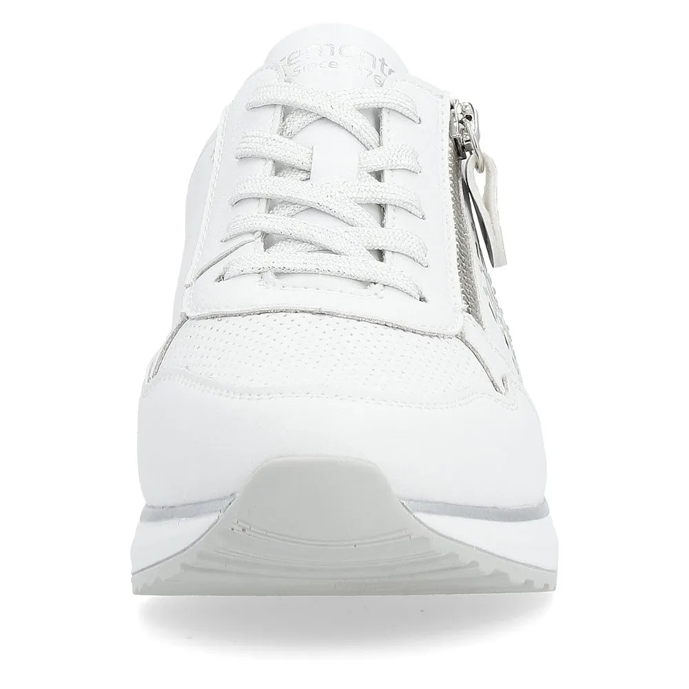 Ces sneakers vous accompagneront toute la saison. Elles s’adaptent en souplesse au pied, un vrai confort à découvrir ! Les personnes qui portent des semelles orthopédiques seront enchantées par ces chaussures avec semelles amovibles de la marque Remonte ! Par souci pratique ce modèle intègre à la fois un laçage à l’avant et une fermeture éclair sur le côté.