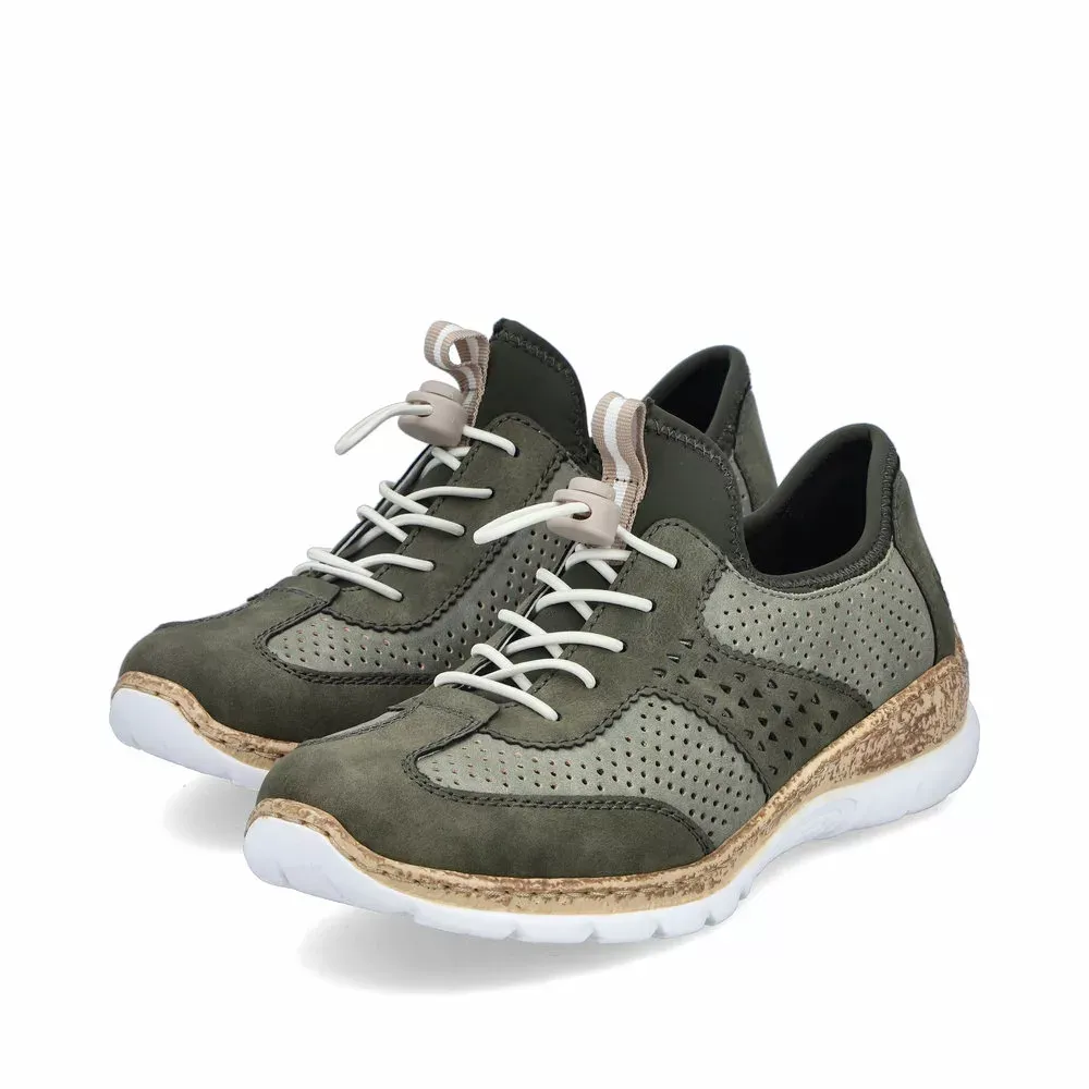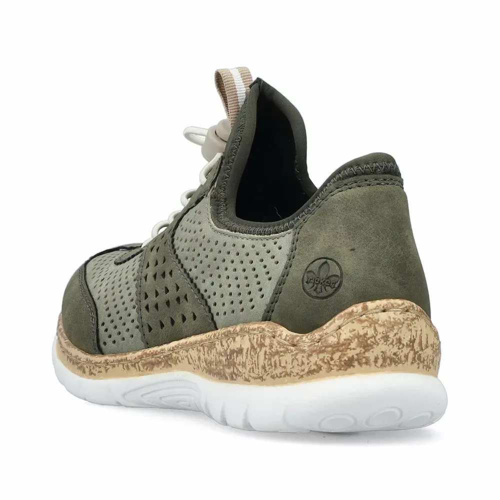 Vous ne quitterez plus les N4245-54 ces baskets élastiquées vertes pour femme de la marque Rieker très faciles à chausser au quotidien. En effet, elles disposent de lacets élastiqués avec curseur et s’enfilent très facilement comme des chaussettes ! Légères et ultra confortables, elles disposent de semelles intérieures avec mémoire de forme.
