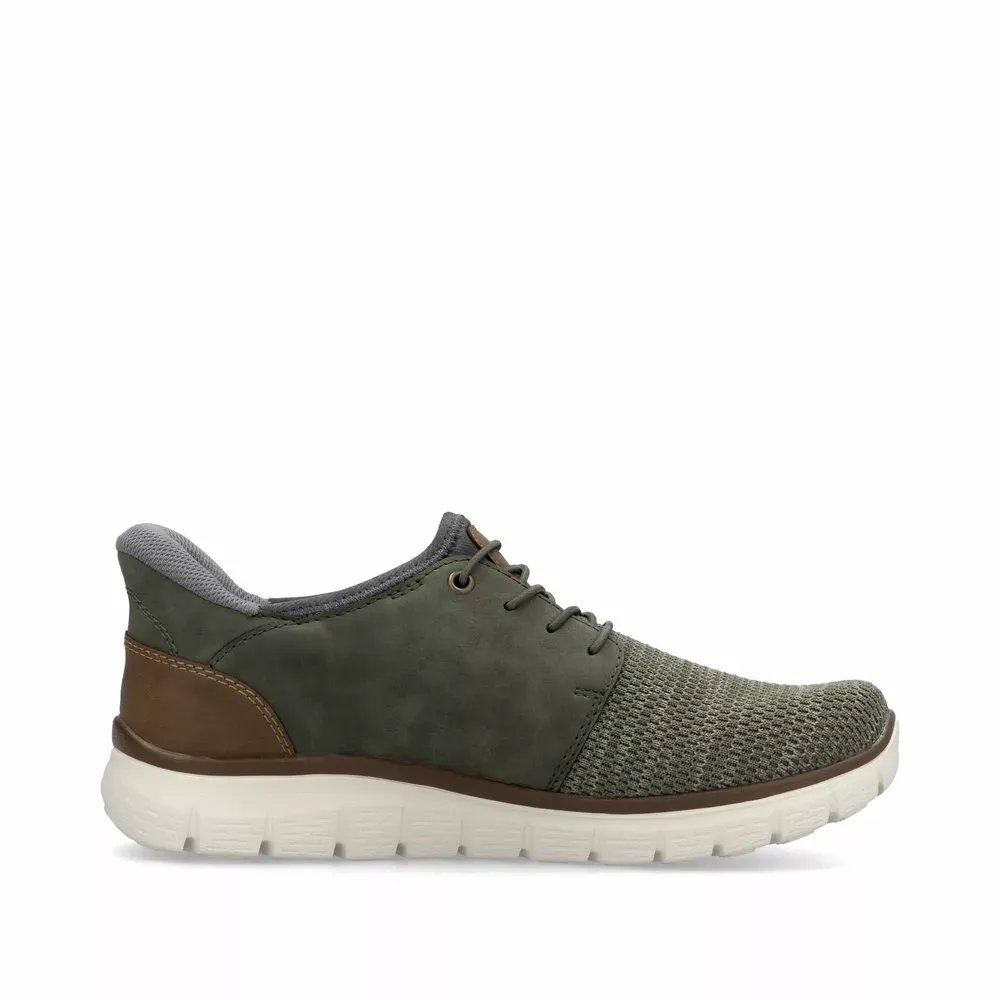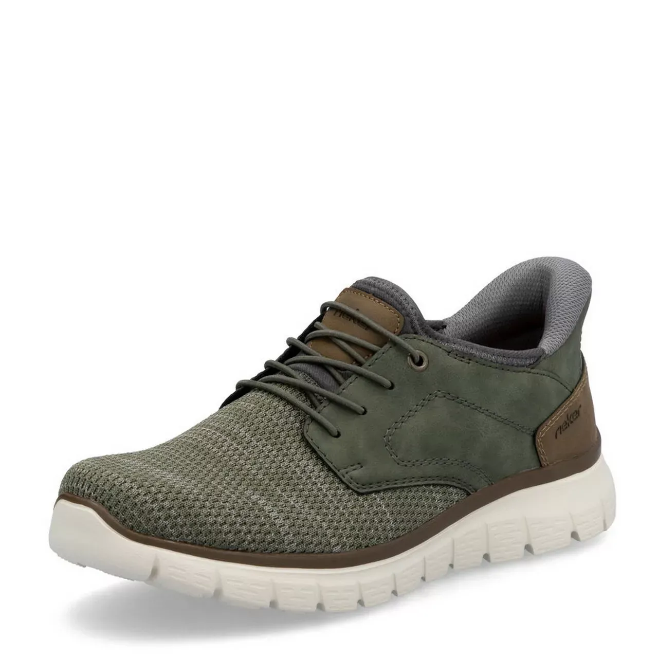 On adore le style et le confort des baskets homme B6658-52 de la marque Rieker ! Ces baskets légères kaki sont agréables à porter à la saison Printemps-Été grâce à leur tige textile. Vous serez étonné par leur grande légèreté. Montées sur une semelle souple et antidérapante, ces chaussures basses se rendront vite indispensables ! Ce modèle est pourvu de lacets élastiques, plus besoin de se pencher !