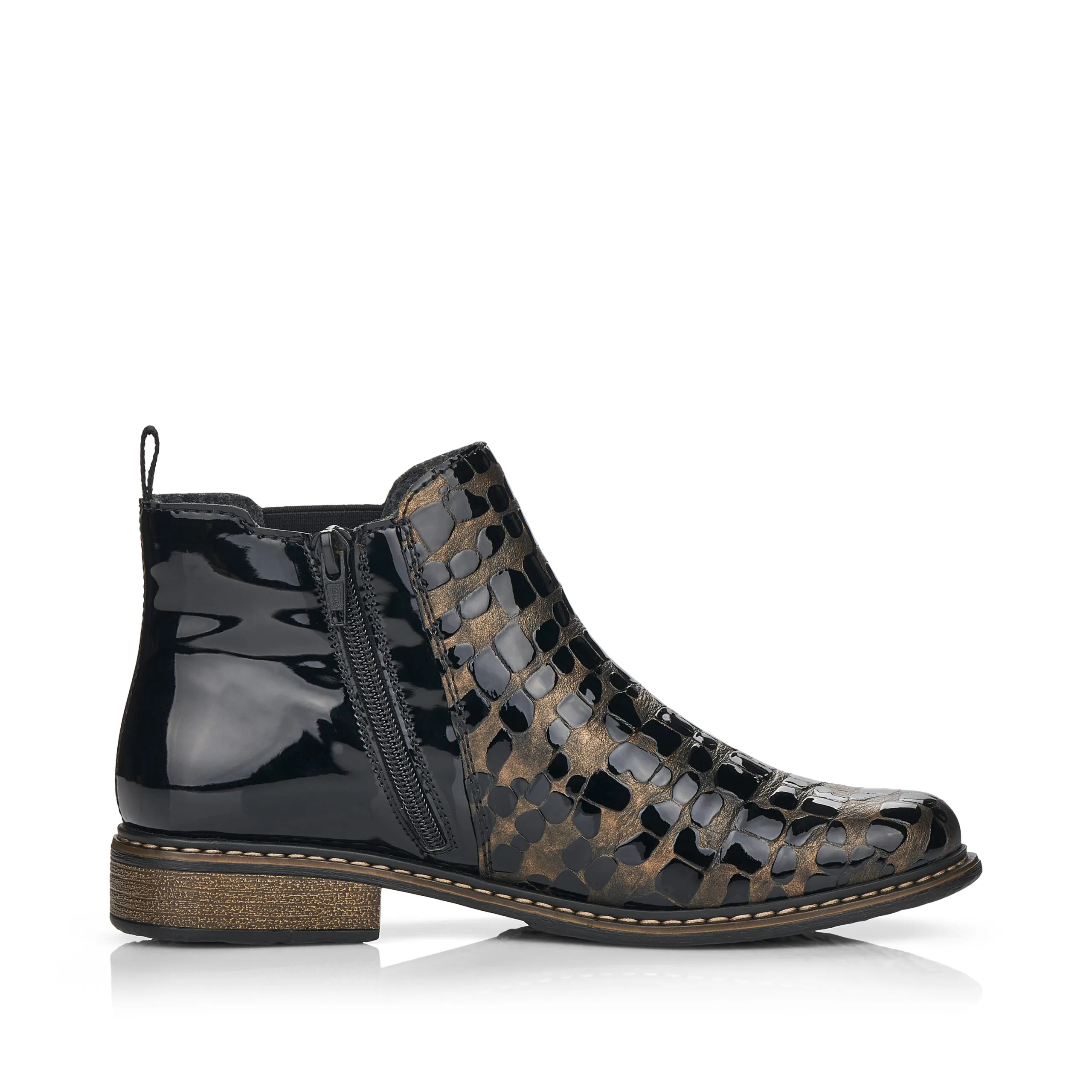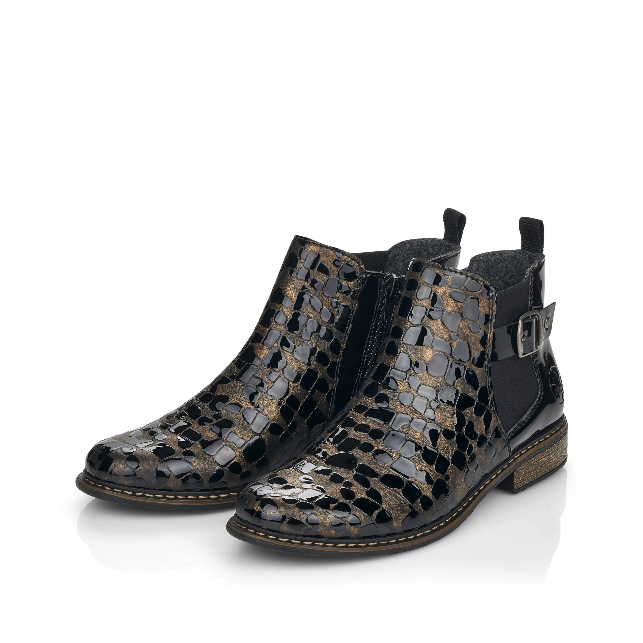Bottines noire et bronze pour femme.