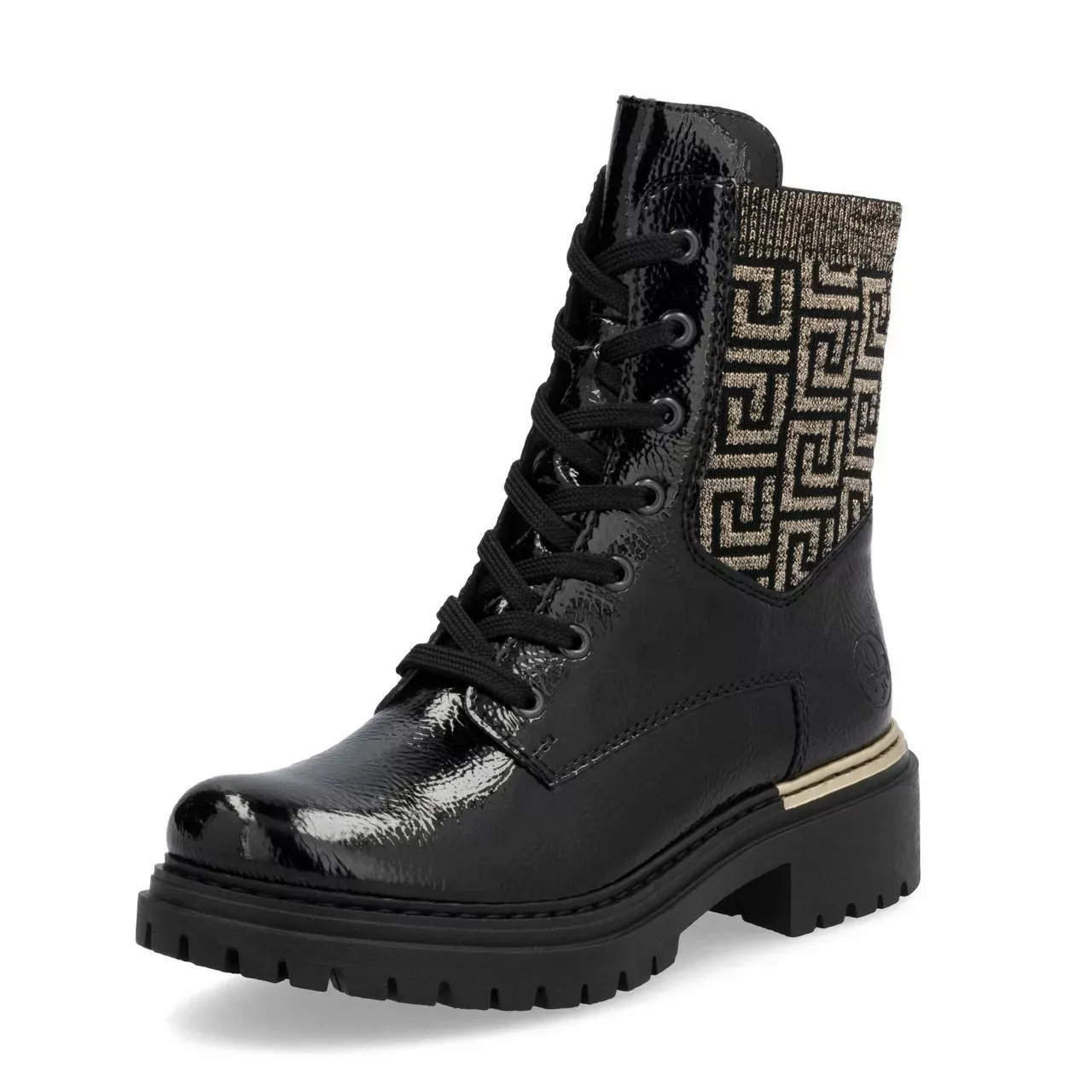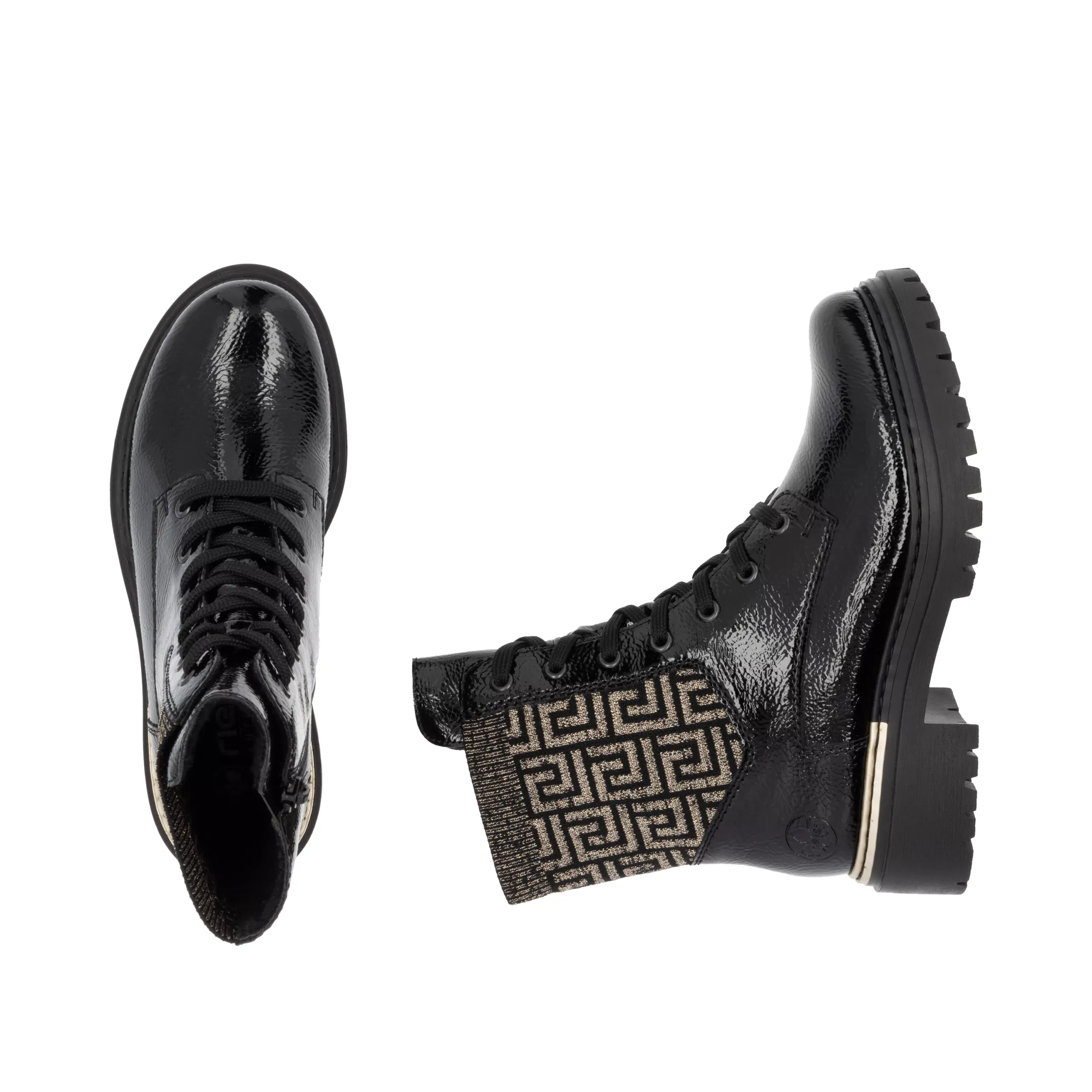 Ces bottines vernies à lacets de la marque Rieker vous raviront par leur grand confort et leur esthétisme. Faciles à porter, confortables, ces bottines pour femme allient style et confort de marche. Par souci pratique ce modèle intègre une fermeture éclair sur le côté.
