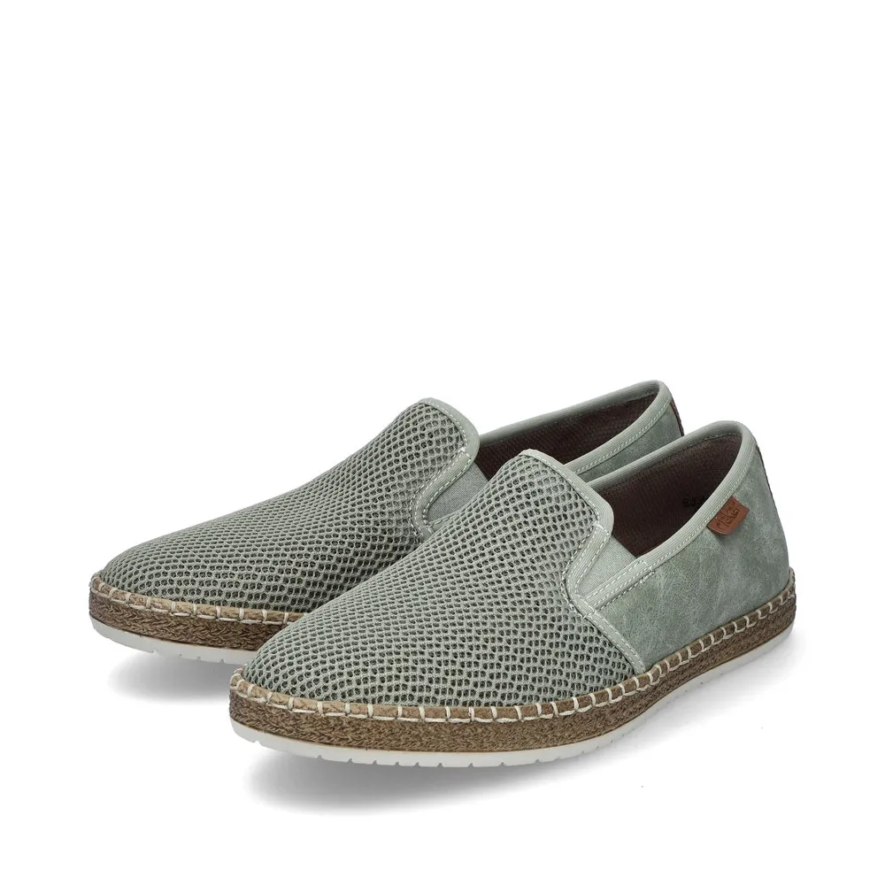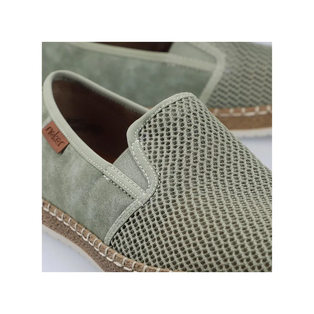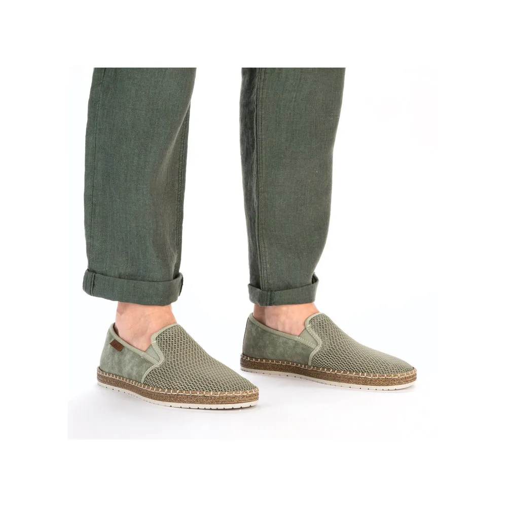 Ces mocassins verts en toile Rieker seront faciles à chausser et à porter pour les beaux jours grâce à la légèreté et sa souplesse. On aime les deux élastiques d’aisance qui ajouteront du maintien et de la souplesse à vos déplacements ! Pour que votre confort de marche soit maximal, ces chaussures homme disposent d’une semelle intérieure matelassée et d’une semelle extérieure antidérapante très souple.