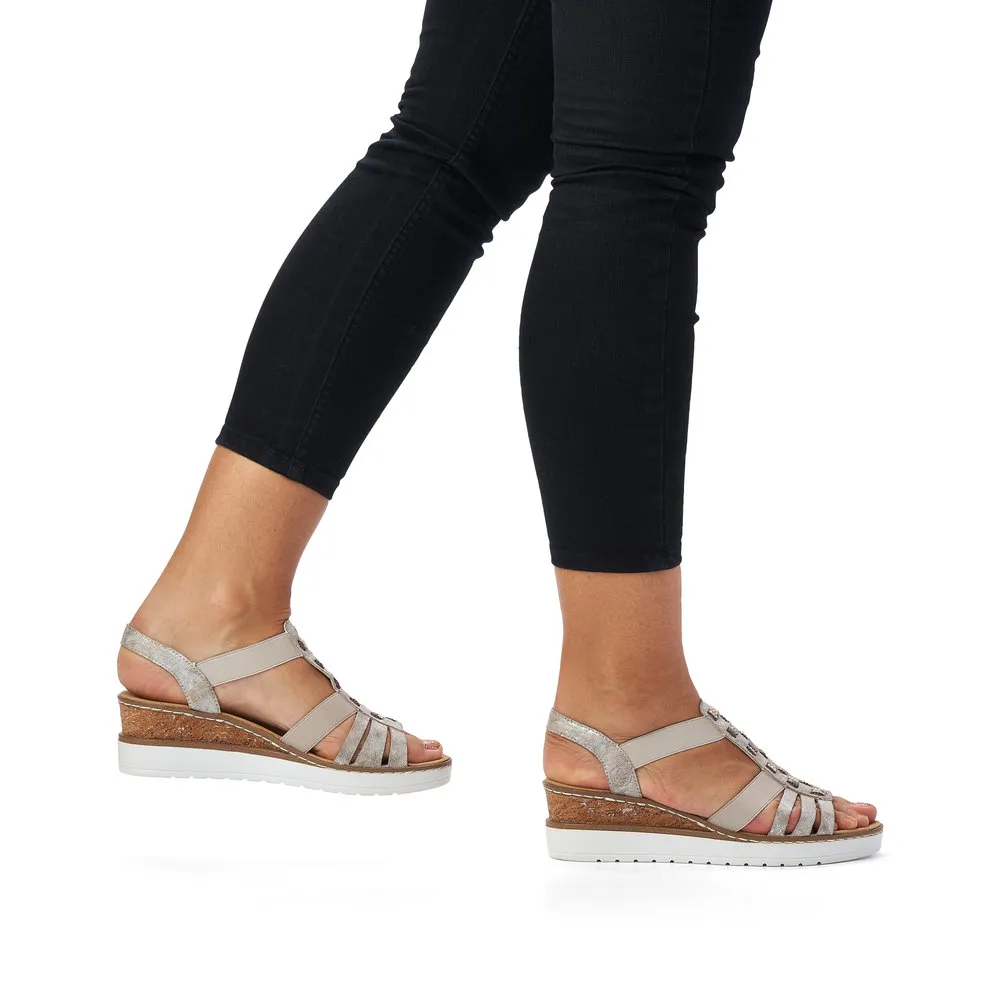Sandales argentées compensées pour femme.