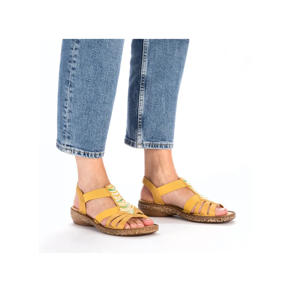 On adore les sandales 62808-68 de la marque Rieker, un modèle qui offre un style actuel et féminin dont vous ne pourrez plus vous en séparer ! Faciles à porter au quotidien, ces jolies sandales femme se chaussent rapidement grâce à leur élastiques d’aisance sur les cotés. Elles sont également montées sur une semelle flexible, l’idéal pour une marche assurée.