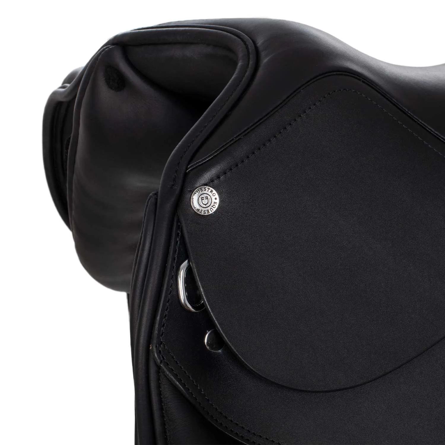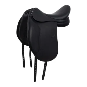 Selle de dressage en cuir haut de gamme, dotée de taquets amovibles pour permettre au cavalier d’ajuster sa position selon ses préférences. Idéale pour un contact rapproché tout en respectant les mouvements naturels du cheval.