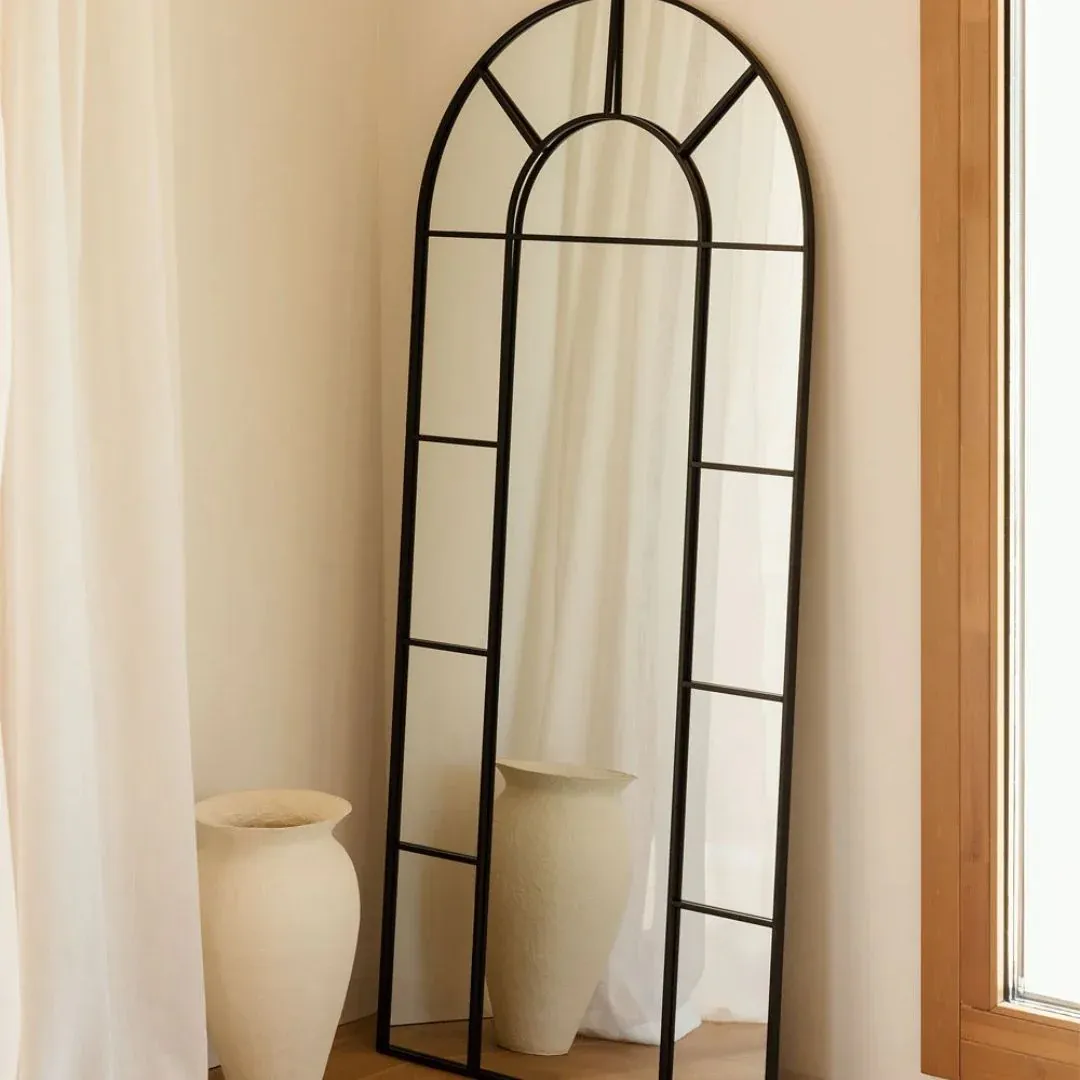 Le Miroir mural 80×180 cm en métal effet fenêtre Diana combine une structure en fer résistante avec une surface en forme d’arc divisée en plusieurs miroirs de tailles différentes simulant une grande fenêtre. Conçu pour apporter plus de lumière à la pièce et créer une sensation d’espace inattendue . Vous pouvez le placer dans différentes pièces, dans le hall, dans le salon ou dans la chambre et compléter avec élégance la décoration de votre maison.