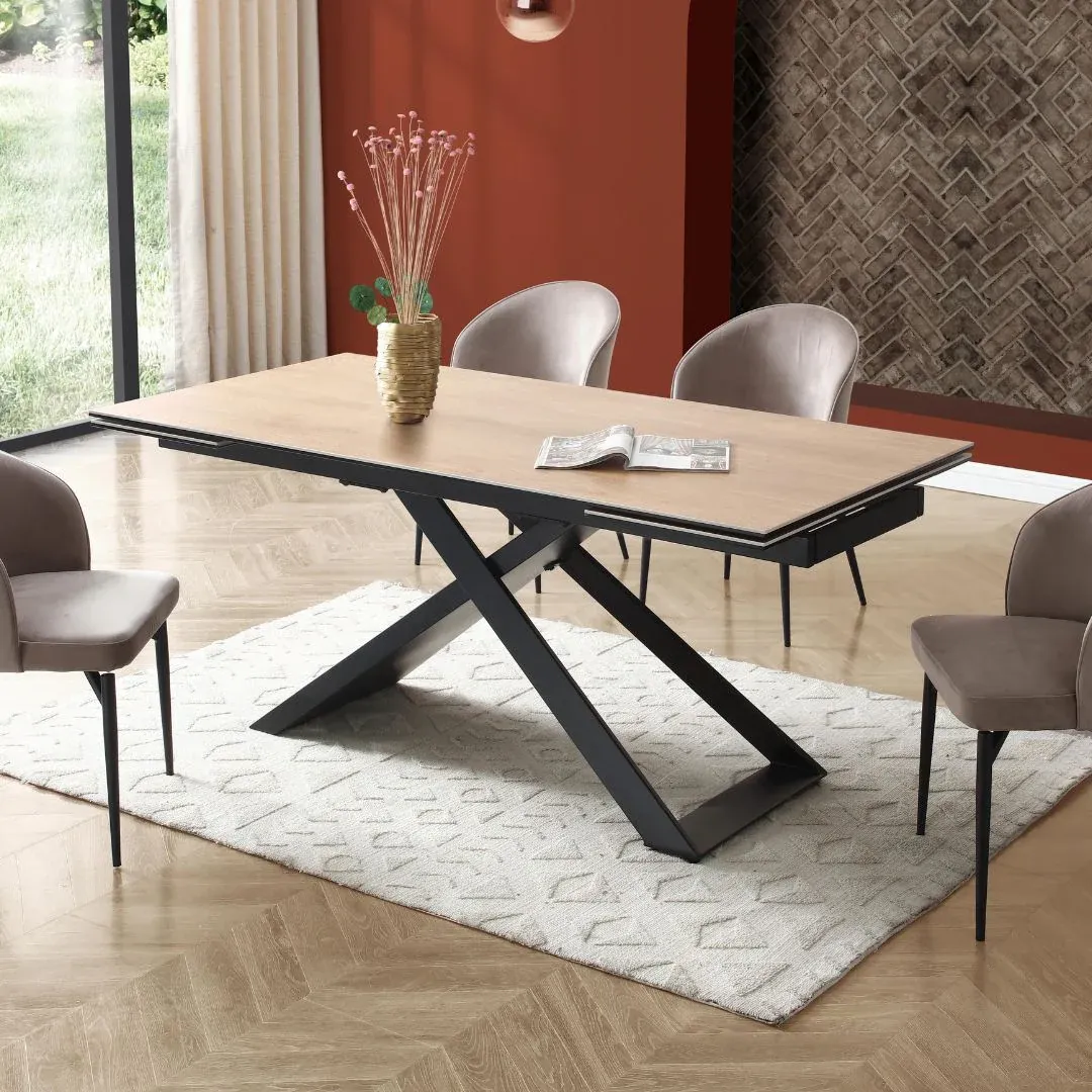 La table à manger extensible XERENA est une table en céramique et verre trempé reposant sur un piètement en métal. Ces matières font d’elle une table très résistante. Grâce à son système 2 allonges en bout de table vous pourrez facilement organiser des repas conviviaux.
