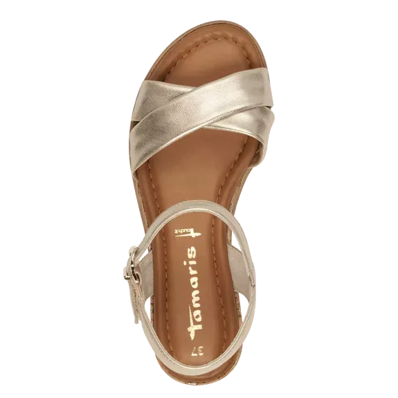 Ces sandales dorées compensées Tamaris ajoutent une touche lumineuse et glamour à vos tenues estivales. Son design élégant combine un matériau supérieur synthétique de haute qualité avec un rembourrage textile agréable et offre un talon compensé stable. Qu’il s’agisse de fêtes d’été ou de moments de détente ces sandales compensées pour femme sont le compagnon idéal pour toutes les occasions.