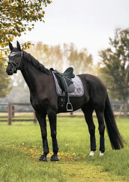 Ce nouveau tapis de selle est fabriqué dans un joli tissu de couleurs mélangées.